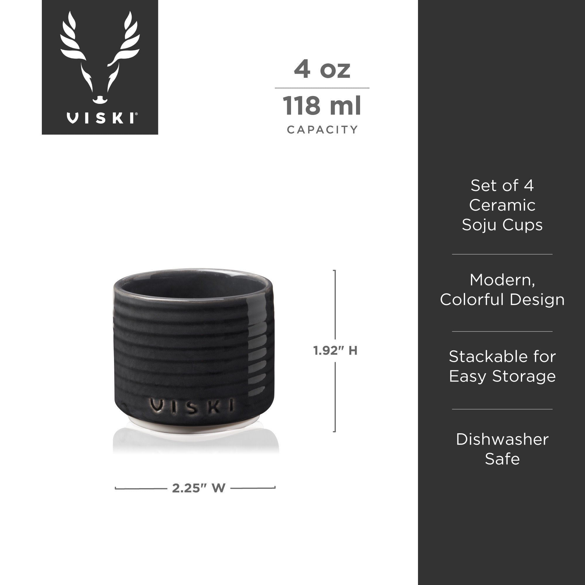 Soju, Korea’s most popular spirit, is traditionally enjoyed in small pours, making these 4 oz ceramic cups an essential companion for the experience. Designed to suit the culture and function of soju drinking, this set of four stackable cups combines practicality with thoughtful design, offering a seamless way to serve and enjoy this smooth spirit.