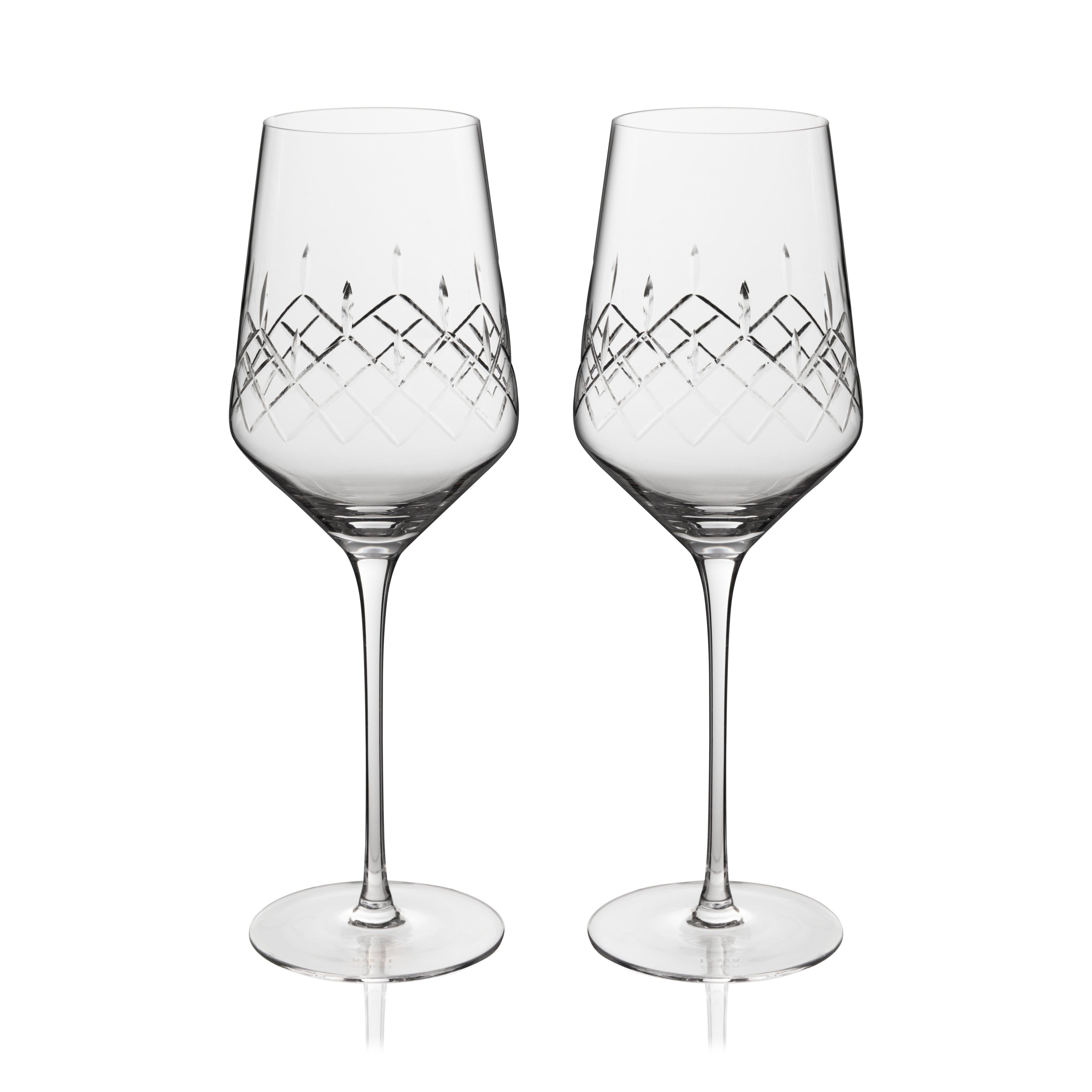 An elegant addition to our best-selling Admiral Collection, these crystal wine glasses combine a modern silhouette with a timeless hand-etched linework pattern. With a generous 19 oz capacity and dishwasher-safe construction, this set of two lead-free crystal glasses is designed for versatile enjoyment and effortless care. Perfect for enjoying your favorite red or white wines.