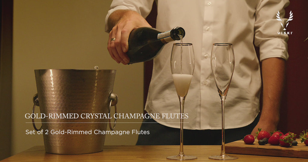Raise more toasts with our festive pair of gold embellished champagne flutes! Manufactured from lead-free crystal and decorated with the lightest trace of gold along the rim, this is a set that is sure to stun.