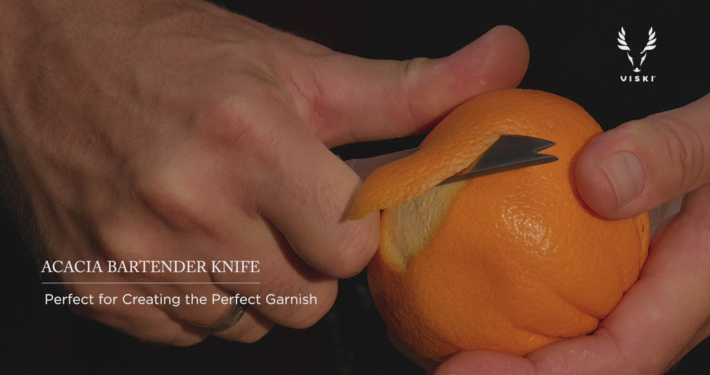 Finish handcrafted cocktails with a professional twist of citrus. Riveted wood with polished exposed grain provides ergonomic support while a curved, double-tipped blade slices segments of your preferred produce into delicate garnishes. Most suitable for oranges, lemons, and limes.