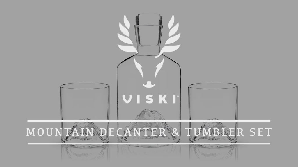 Display your liquor in style with this unique mountain decanter and tumbler set. This crystal liquor decanter set pays homage to the lofty peaks of the Pacific Northwest with a hand-blown, dimensional mountain base. These handmade items may exhibit slight variations.