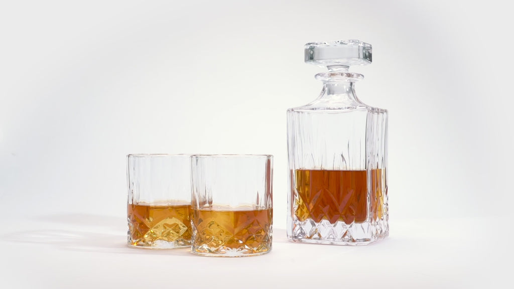 Drink in style with these iconic rocks glasses. With a classic silhouette, heavy base, and cut-crystal details, this crystal whiskey tumbler set is designed for sipping your best Scotch.