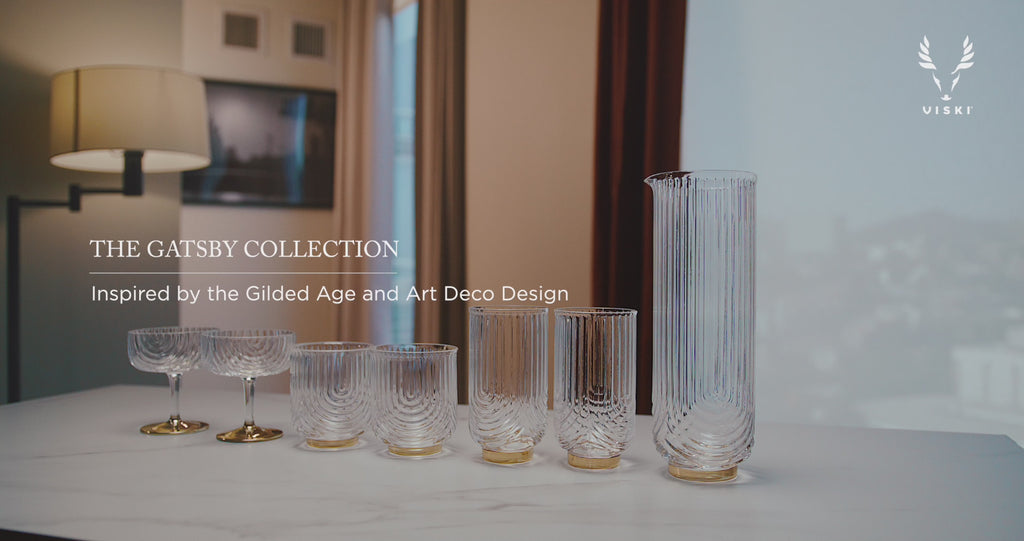 Polished gold and draping glass swathe the surface of this double old fashioned duo, adding a vestige of the Gilded Age to an already elevated set of glassware.
