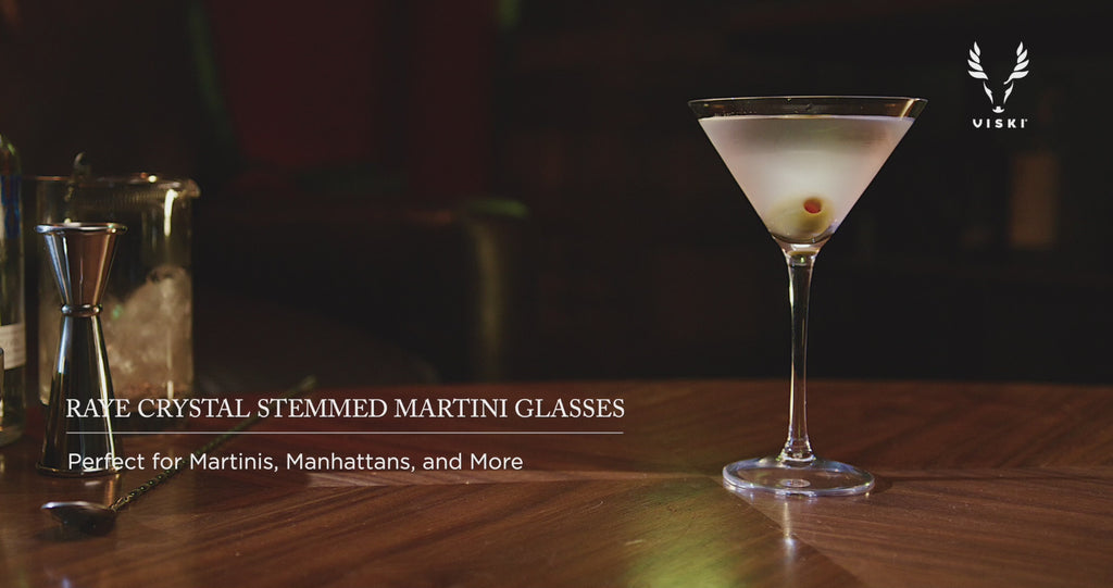The aesthetic of Viski's stemmed crystal martini glasses elevates any cocktail experience, whether it's a Manhattan or a Cosmopolitan.